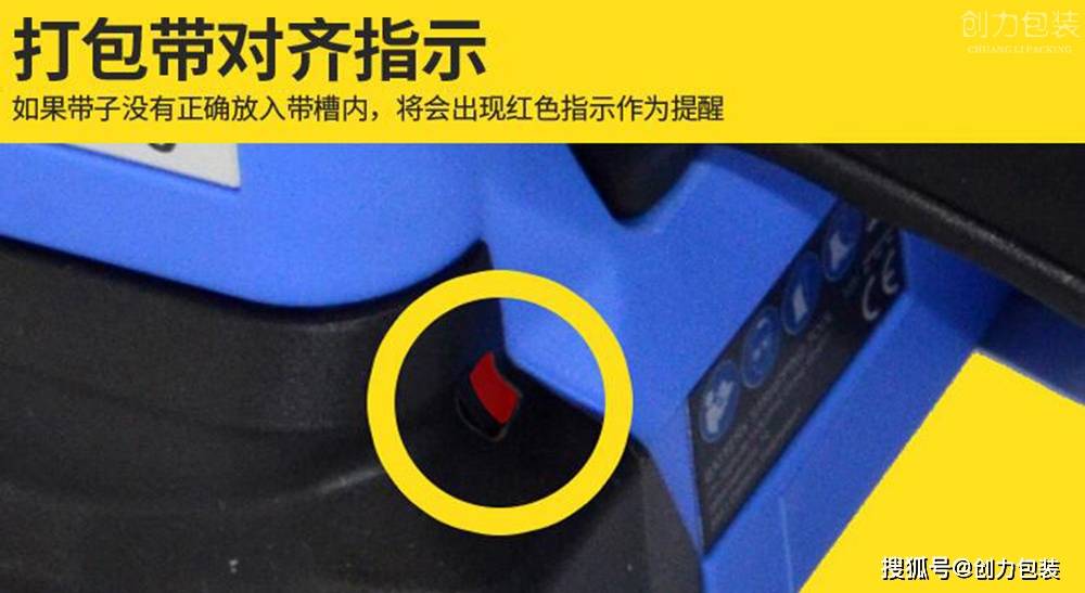 1、只需將打包帶放入(部分打包機還帶有打包帶對齊指示,再也不用擔心自己打歪了),